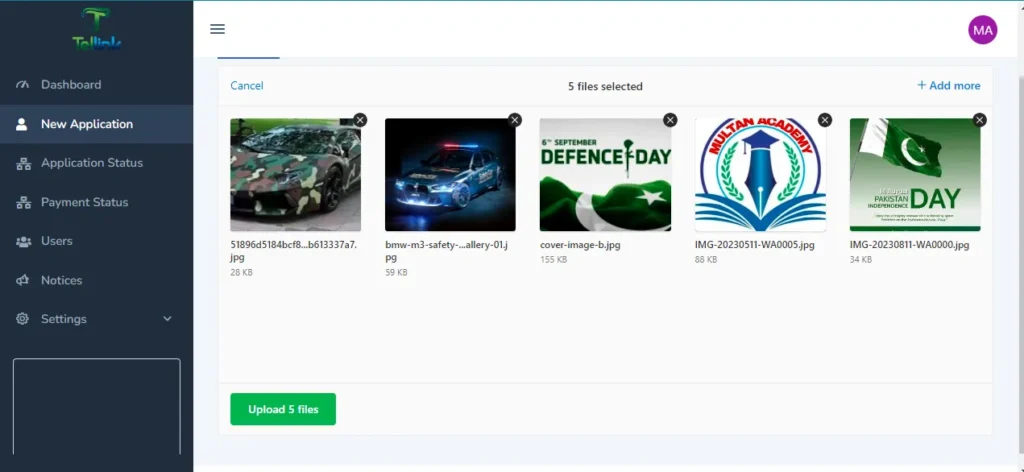 • File Upload: Users can upload documents and images in multiple formats, including PDF, DOCX, and JPEG.